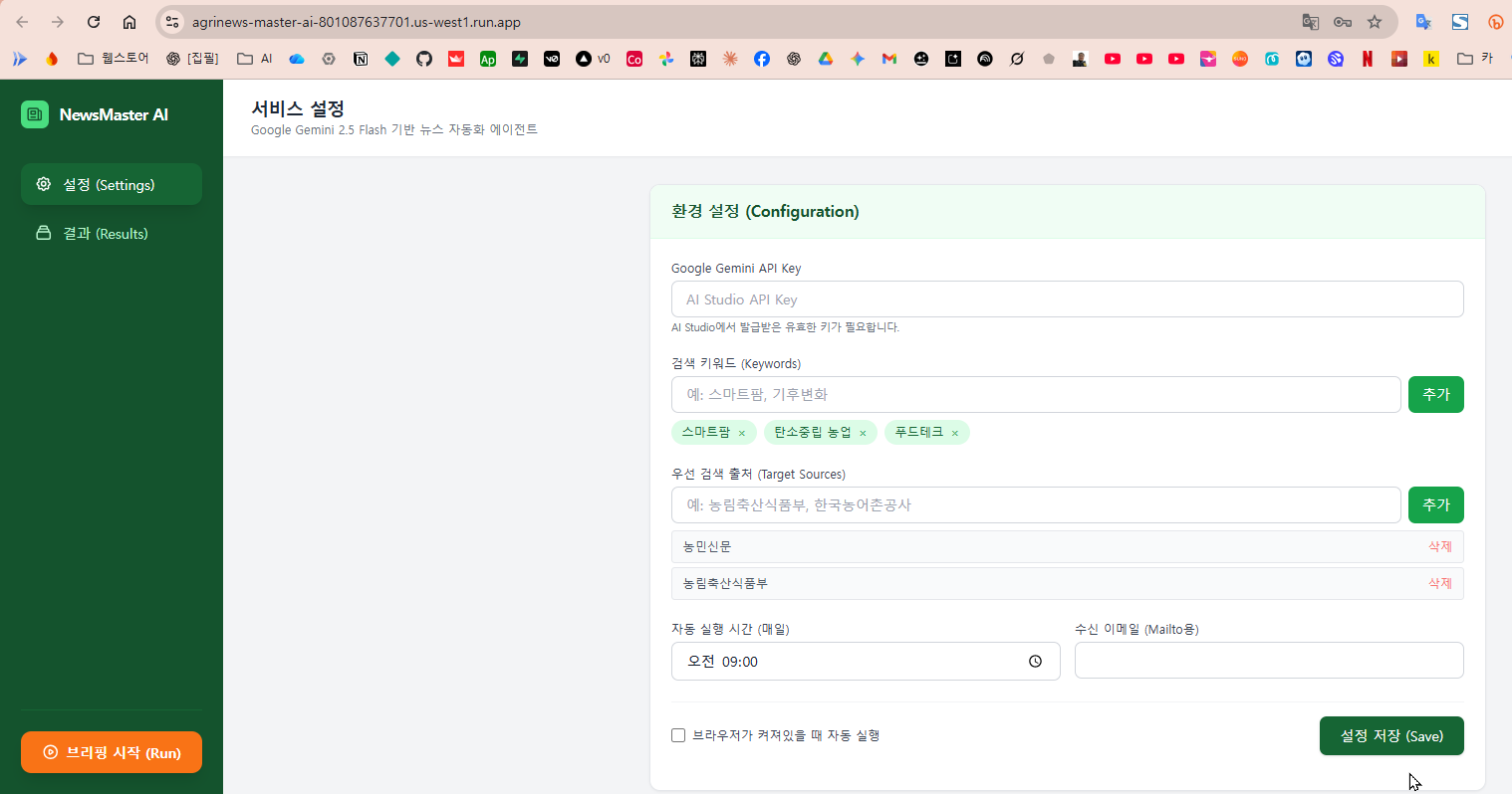 - 데이터 저장 (Firestore): 사용자별 키워드, 소스 URL, Gemini API 키, 이메일 설정이 안전하게 저장됩니다.
