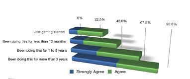 - 인내의 힘 – 최소한 3년 이상의 소셜미디어 마케팅을 한 업체들이 가장 큰 결과를 얻는다. 이제 막 시작한 업체는 25%만이 파트너쉽을 형성한 반면 3년 이상을 한 업체는 80% 이상이 파트너쉽을 맺게 되었다. 단지 몇달만에 효과를 볼 것으로 기대하지말라. 시간이 필요하다.