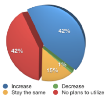 42%가 웹비나/텔레세미나를 활용할 계획이 없는 것으로 조사되었다. 하지만 49%의 자영업자는 이 분야의 마케팅을 늘릴 것으로 응답했다.