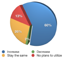 60%가 이벤트 마케팅(네트워킹, 컨퍼런스, 쇼 등)을 보강할 예정이다. 자영업자의 70%, 소규모업체의 65%가 이벤트에 참여할 것이라고 했다. 이는 대규모업체의 43%에 비하여 높은 수치다.