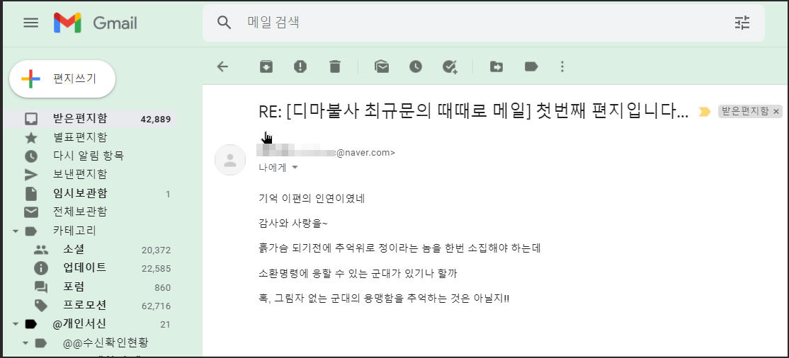 방송 시연을 위해 미리 테스트 삼아서 새벽에 메일을 하나 보내보았다.