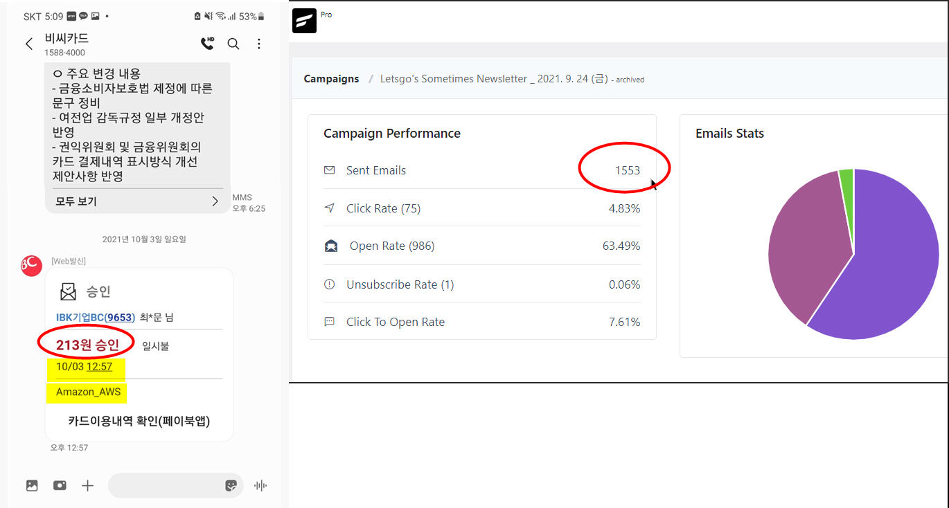 1500통이 넘게 발송된 것에 대한 금액이 2천원도 아닌 달랑 213원이다!!