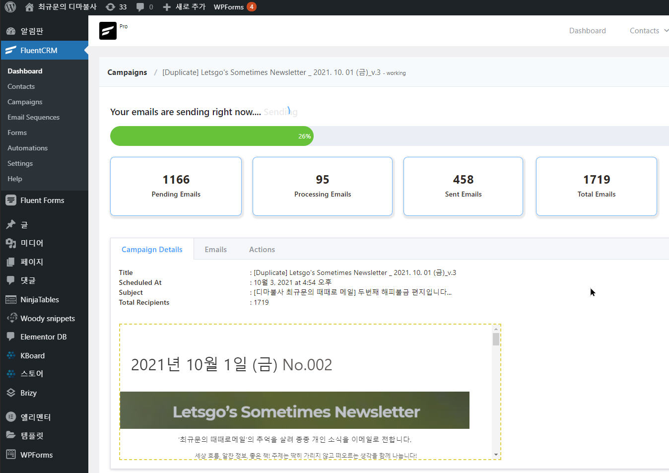 여기에 더해 오픈 소스 정책을 고집하며 무료 SMTP(우편접수 발송처리) 시스템을 제공해주는 Fluent SMTP는 찰떡 궁합이다. 아마존 SES 및 SNS 서비스와 연계하여 반송 메일을 관리할 수 있도록 해준다. 이메일 작성 템플릿과 발송대상자 명단을 관리할 수 있는 Fluent CRM과 연동해서 쓰면 이메일 마케팅 자동화 시스템 구축이 가능하다. Pro 버전(130불/년)을 구입해도 한달에 기껏 1만원 정도 꼴이니 이 어찌 좋지 않을손가!!