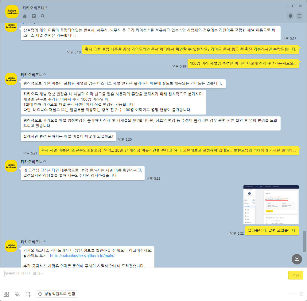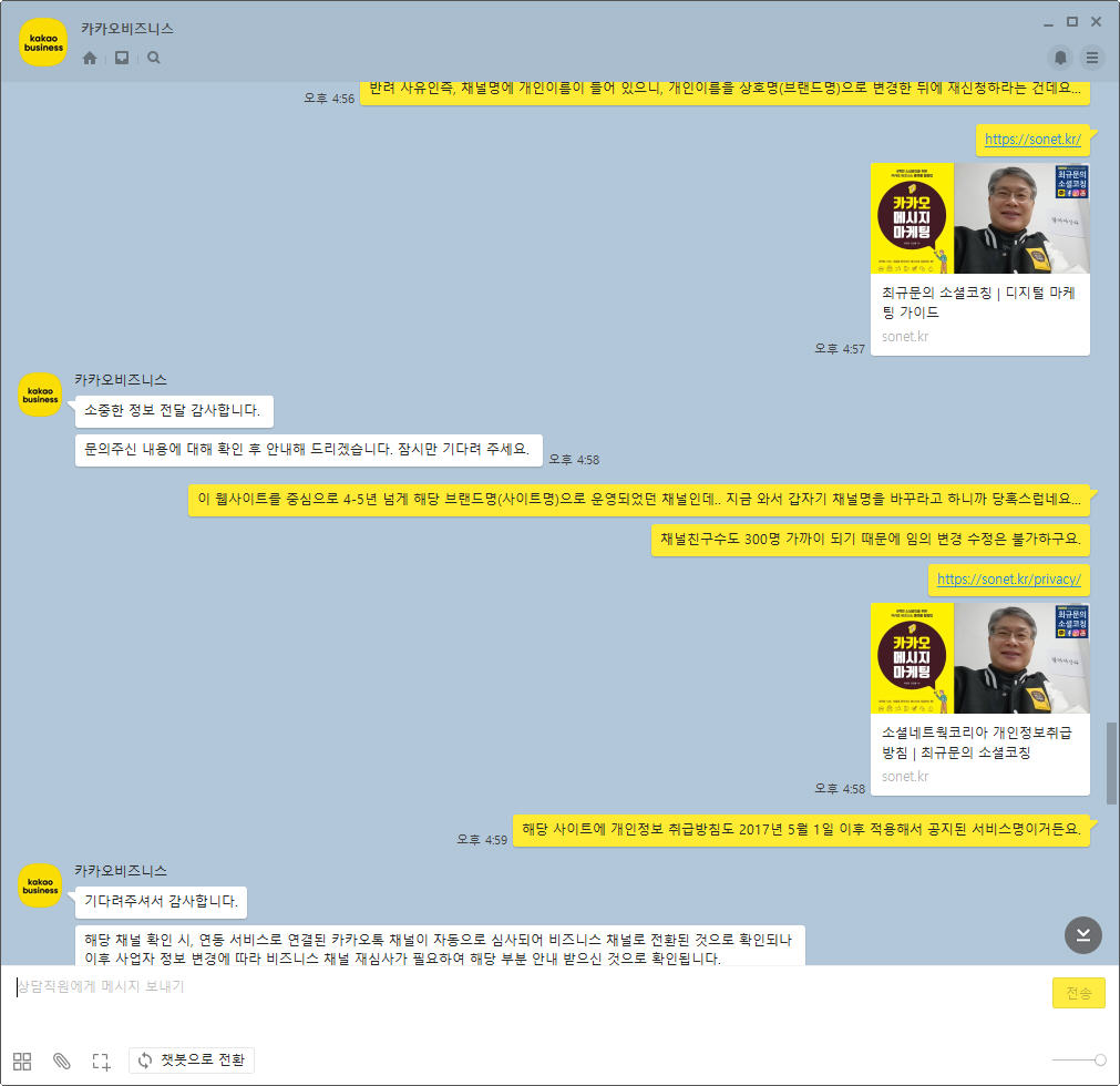 그동안 2~3년 넘게 잘 사용하던 채널의 이름을 느닷 없이 바꾸라는 통보를 해온 전형적인 갑질 느낌이었는데...