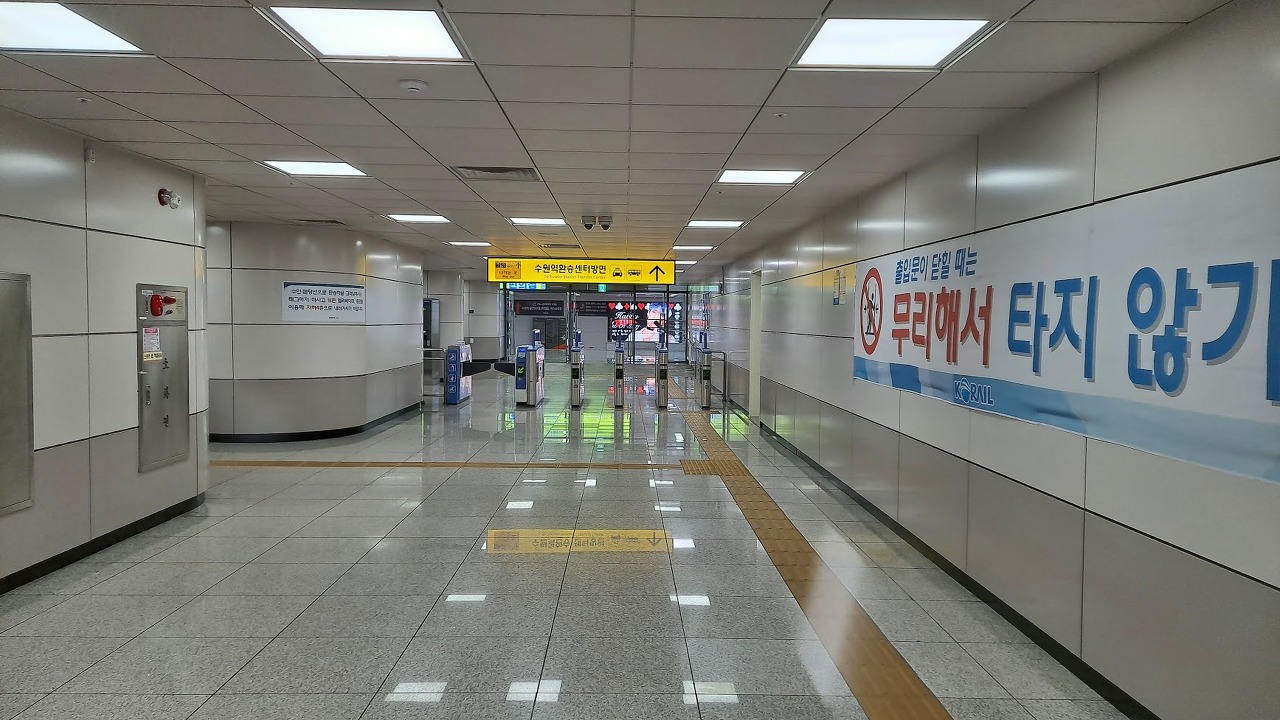 다만 그 이후로도 수원역에 내려 도청 방향으로 내려설 때는 일단 플랫폼에서 육교로 올라와 동편의 도청 방향 게이트 쪽으로 나오는 게 기본 방향이었다. 근데 어라, 열차 문이 열리는데, 육교는 보이지 않고 반대로 지하로 내려가는 출구가 이어지고, 나가는 출구도 동쪽만이 아니라 서쪽으로도 크게 뚫려 있었다.