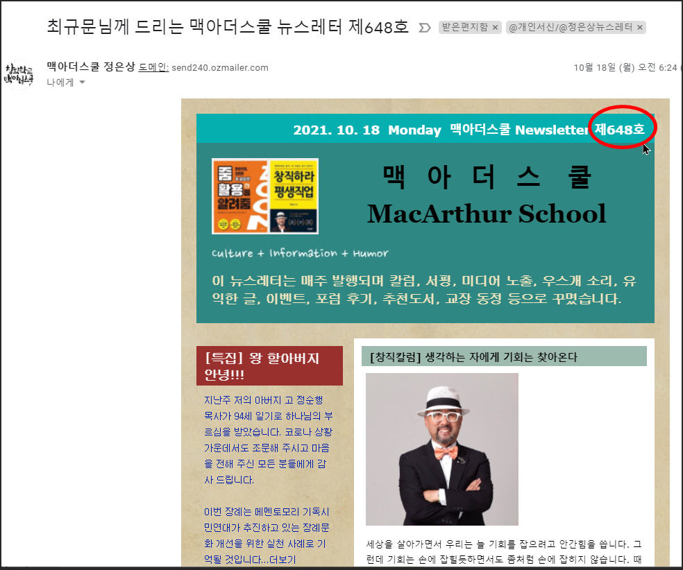 오늘자 먼데이 뉴스레터에 "제648호" 라고 적혀 있다.