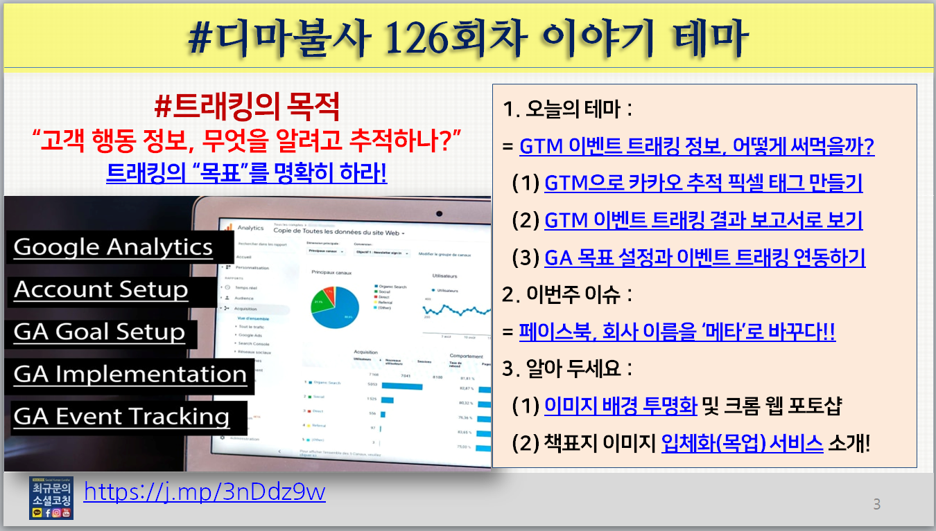 지난 3주 동안 구글 태그 매니저(GTM)에 대해 집중해서 전달하다 보니, 이야기 거리로 잡아놓기만 하고 정작 시간이 부족해 전달을 못했다. 오늘은 내친 김에 1부 파트에서 팁을 먼저 전달하기로 하고 준비한 내용을 우선 거론했다. 이미지를 간단하게 편집할 수 있는 서비스 두 가지를 소개하는 것이 주였는데, 내용을 다시 정리해 공유한다.