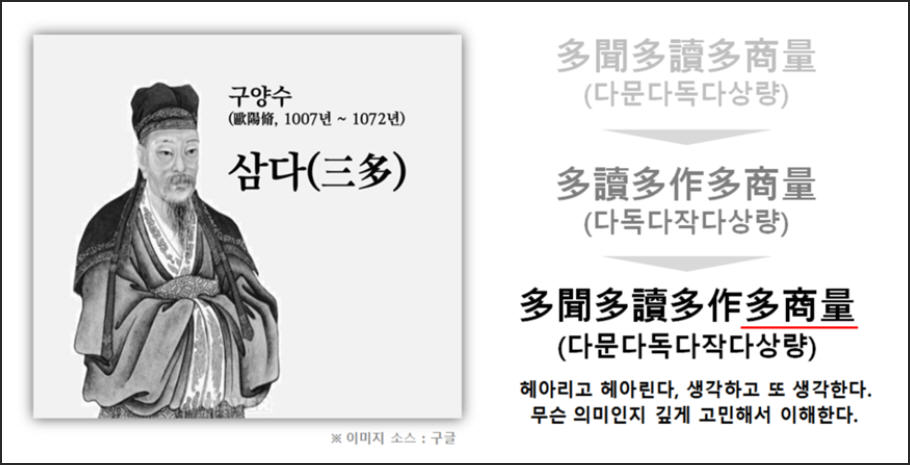 구양수의 삼다(三多)론 중 다상량 삼다론은 누구나 잘 안다. 삼다(三多)는 다독(多讀)ㆍ다작(多作)ㆍ다상량...