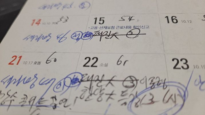 어쩐지 탁상 캘린더에 적혀 있던 교육 일정표에 삭제선이 긁혀 있었는데...