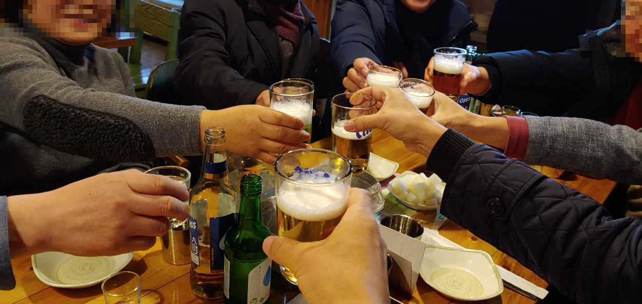 모임 인원은 맞춤 맞게 8명, 4인용 식탁 두 개를 풀로 차지하고 앉아서 간만에 치맥 안주에 쐬주 안주로 오뎅탕을 얹어서 시간 가는 줄 모르고 뒤풀이를 즐겼다. 이게 얼마만인가, 작년 초부터 시작된 거리 두기 였으니... 꼬박 2년이 다 된 마당에 8명이나 한 자리에서 술잔을 마주치며 건배를 했으니... 즐겁지 않을 수가 없었다.