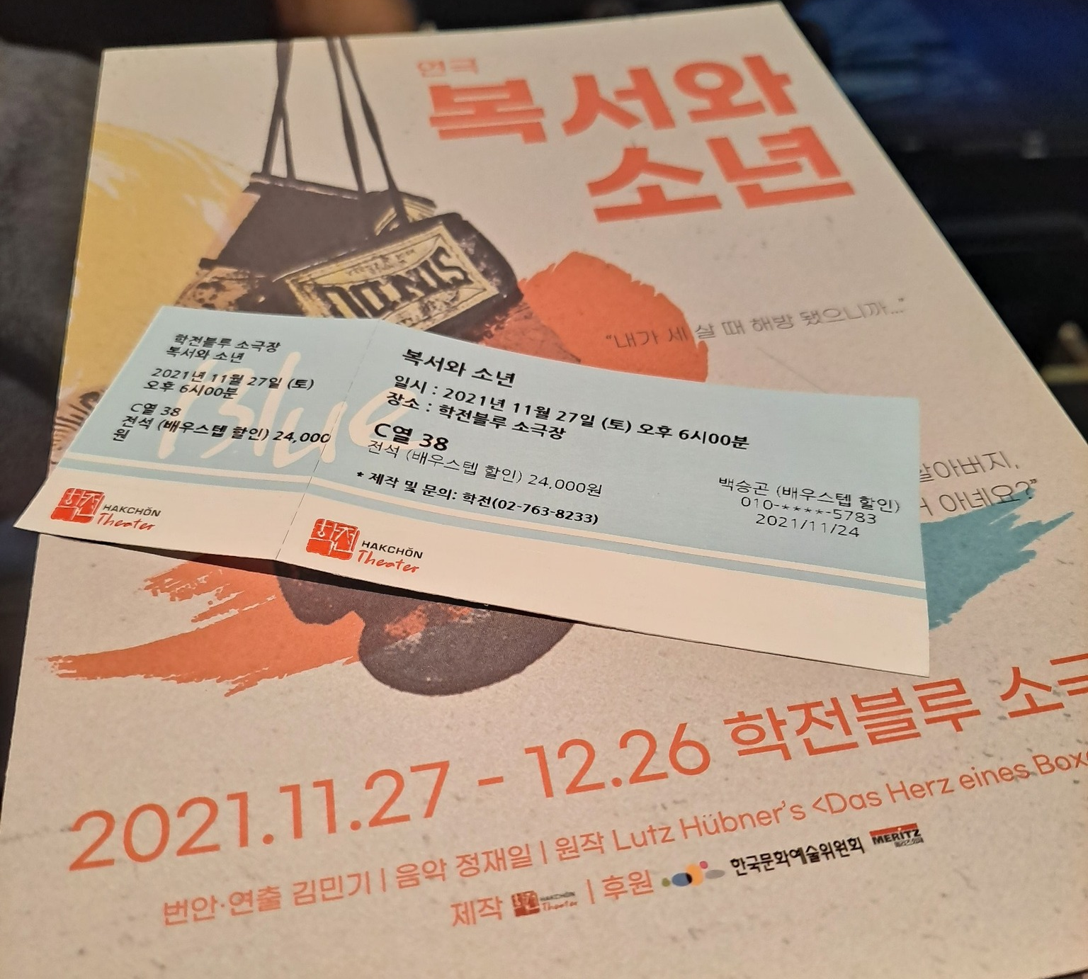 한 달에 한번 관람이 목표 아닌 목표였기 때문에... 코로나가 닥치기 전에 우리가 소화해낸 연극들이 한두 편이 아니다. 나름 이름 있고, 작품성이 있다고 소문난 작품들은 거의 다 추리고 추려서 보았기 때문에... 나름 눈높이가 많이 높아졌다. 아마도 오늘 본 "복서와 소년"이 그닥 감흥을 크게 주지 못한 것도 어쩌면 지금까지 봐온 공연들과의 차이 때문에 기대치에 못 미친 때문이었을 것이다.