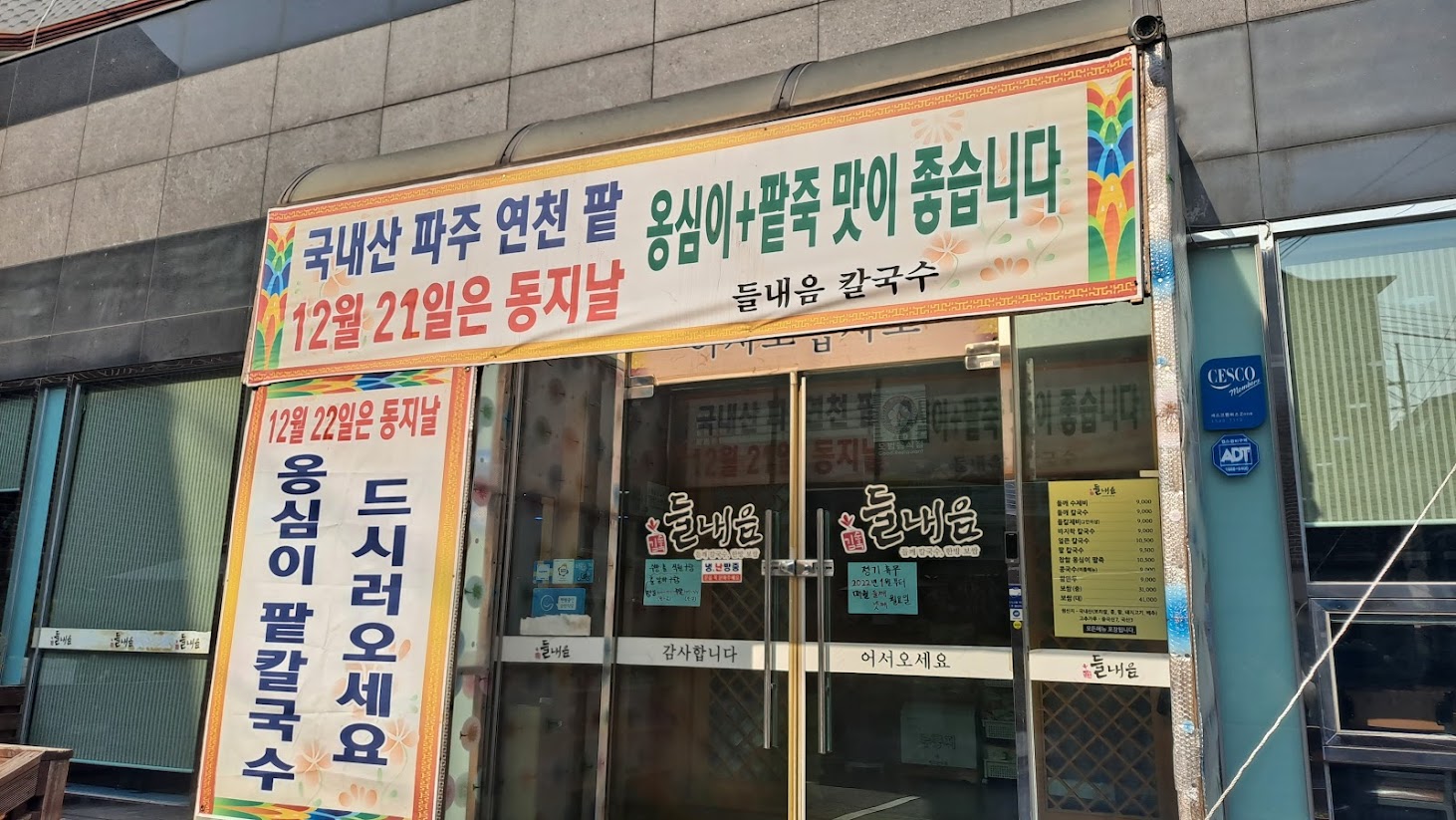 팥칼국수를 보면 동지죽이 함께 떠오르곤 하는데, 가게 앞에 붙은 마지막 계절 인사가 왠지 모르게 올해가 가기 전에 한번은 다시 찾아와야 할 것같은 묘한 끌림과 여운을 남긴다.