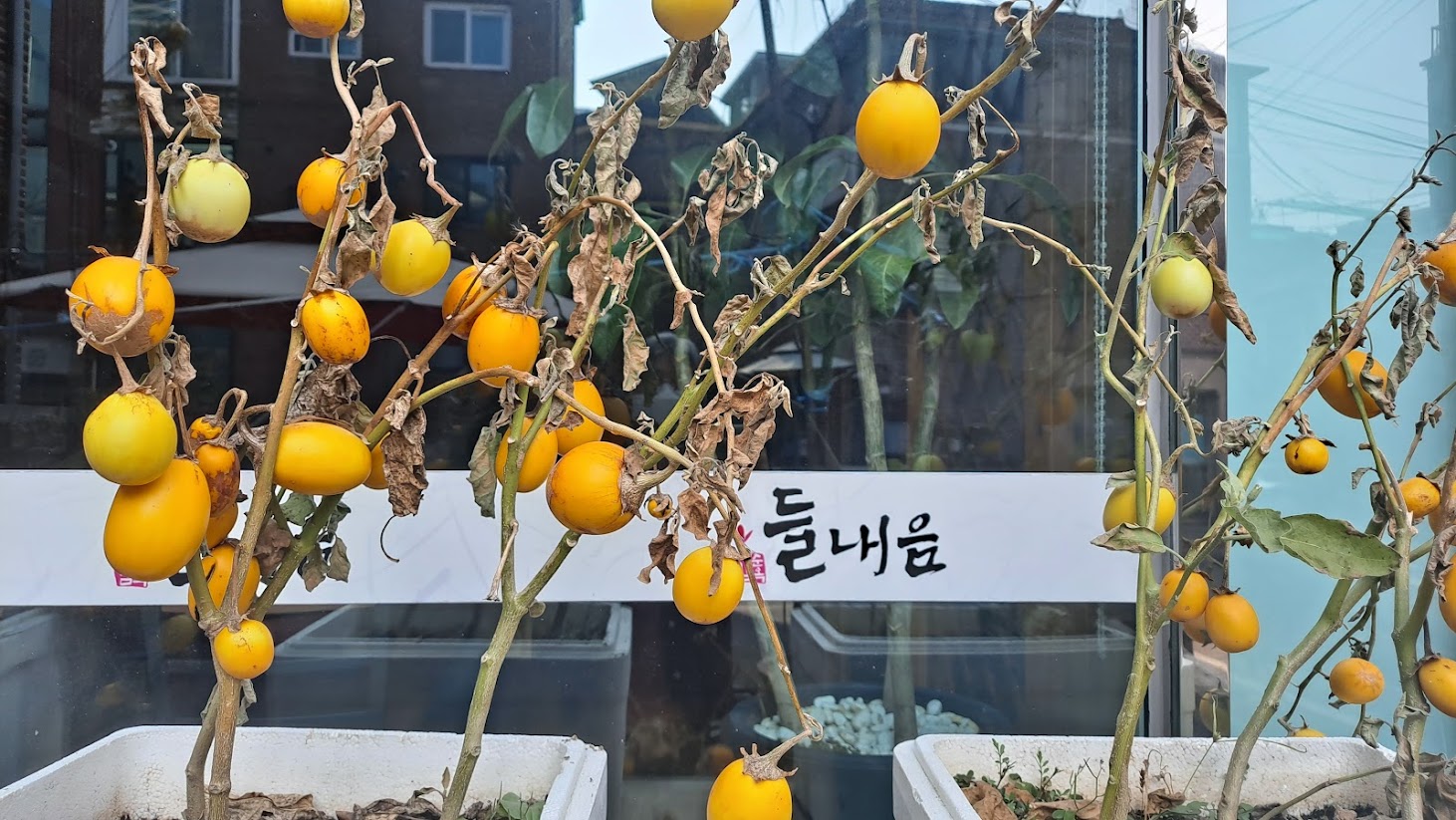 식사를 마치고 부른 배를 붙잡고 밖으로 나와 보니 여름내 우거졌던 화단의 풀들이 잎들은 모두 말라 비틀어지고 열매가 대롱 대롱 달려 있다. 아 이렇게 또 올 한해도 가는구나 싶은 마음에 노오란 열매들이 아쉬우면서도 정겹게 느껴진다.