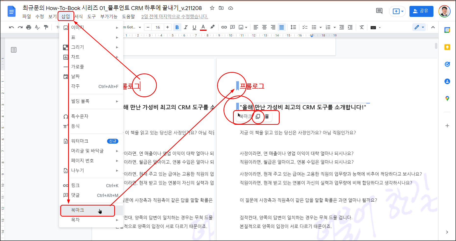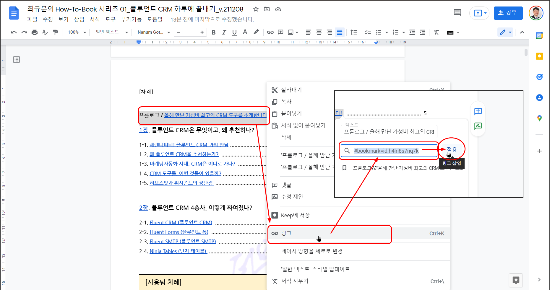 플루언트CRM을 소개하는 실행 가이드북 전자책 탈고 후 최종 교정을 마치고 마침내 손을 털었다!!