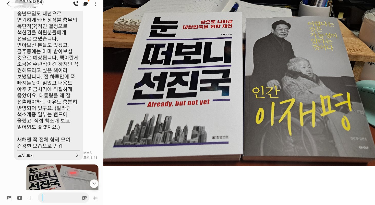한해를 보내면서 모임 동문들에게 추천하고 싶다며 잘 읽으시라는 안내 문자가 책 받은 이튿날 아침에 들어왔다!