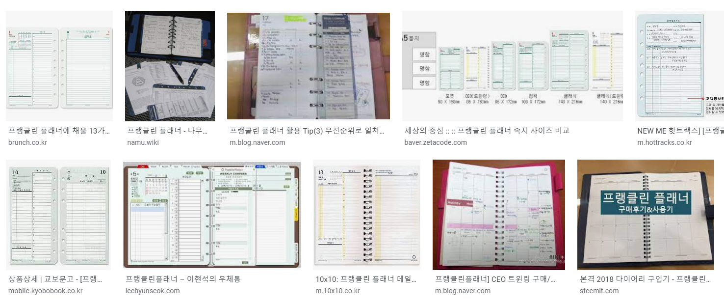 이때 리더십 학습 후 그것을 실천하는 최고의 도구로 제안하고 의무적으로 쓰게 했던 것이 다름 아닌, "프랭클린 플래너"였다. 조직 입장에서는 리더십 교육은 일회성이 강하지만, 플래너는 한번 쓰도록 습관을 들이면 매년 되풀이 재구매가 일어나고, 반복 구매자가 늘어날수록 매출도 누적되는 효과가 생겼기 때문에... 믿을랑가 모르겠지만, 15~20년 전인 그 시절에도 플래너 매출액이 연간 85억까지 찍혔던 것을 기억한다.