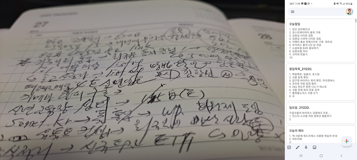 그래서, 오늘도 "투두 리스트"를 짬이 날 때마다 적어놓곤 한다.