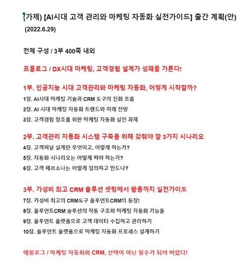 오랜 마케팅 업계 절친 동료와 더불어 올해가 가기 전에 공저로 펴내기로 벌써 한 달 전에 약속한 새 책의 차례 얼개다.