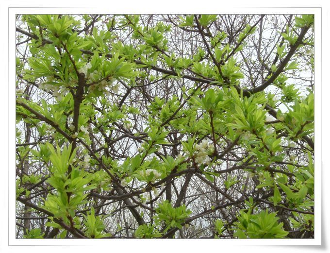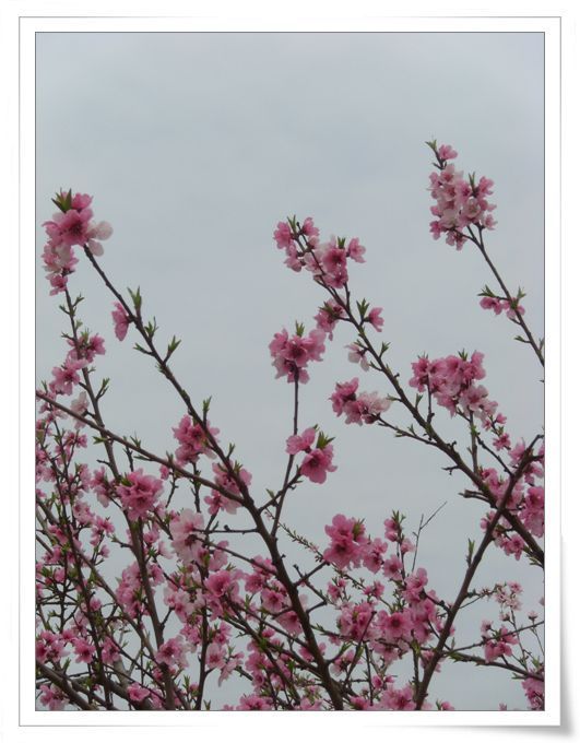 그나마 푸른 새순 위로 붉으스레 부끄러운듯 고운 빛깔을 자랑하는 복사꽃이