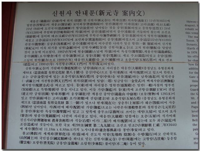 2천원의 문화재관람 티켓을 끊고 5분쯤 걸어 올라가니, 허름한 신원사 안내표지판에