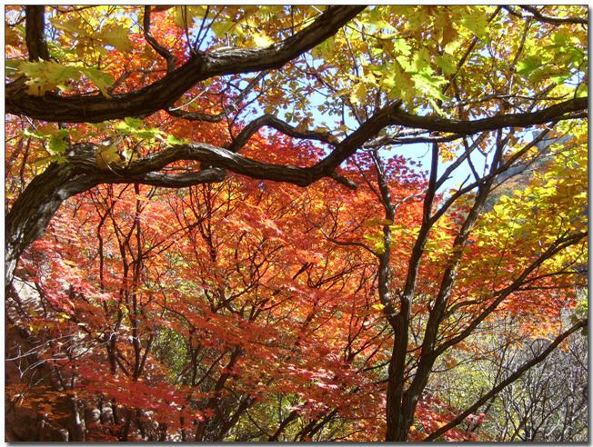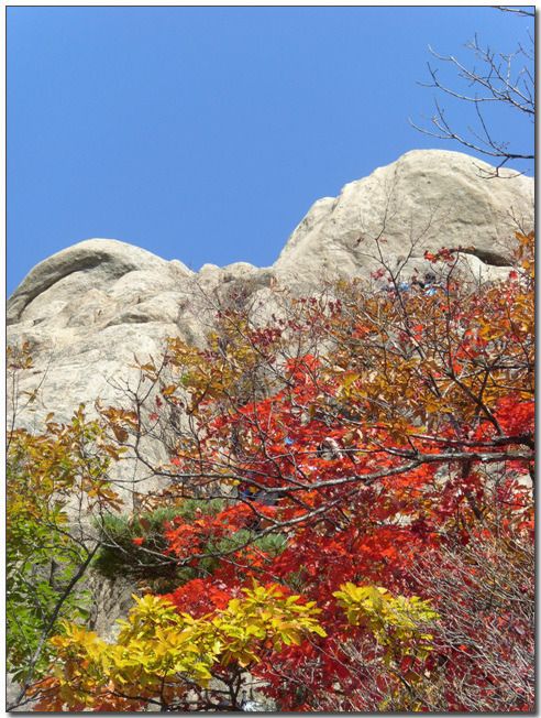 단풍이 절정인 설악산의 대청봉에 엊그제 첫눈이 내렸다더군요. 혹여, 이 가을 설악의 단풍을 못 봐 아쉬운 분들이시라면 가까운 북한산 단풍도 결코 그에 못지 않으니 한 번 눈요기들 하시지요...