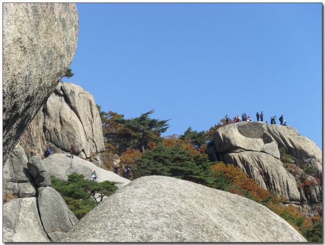 꼭두새벽 김연아 선수가 피겨 공연에서 세계신기록을 세우는 즐거운 장면의 여운을 안고 잠을 청한 덕분인지, 아니면 문수봉으로 갈리는 언덕길에서부터 시작된 선연한 단풍 잎들이 아침 햇살에 환하게 비쳐 번지는 풍경이 깨끗함을 더해 주어서인지, 별로 피곤함이 느껴지지 않는 산행이었습니다.