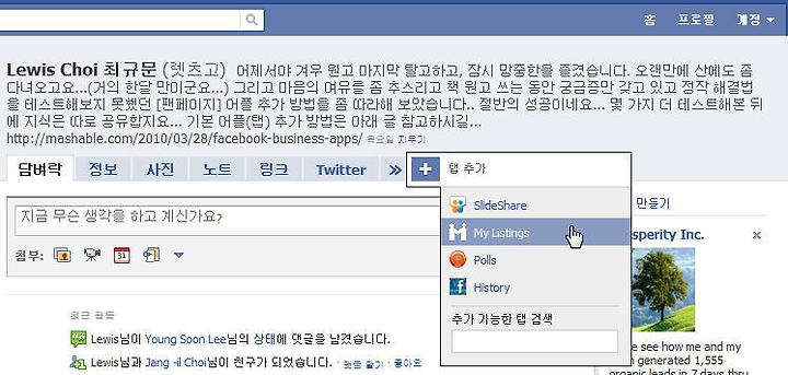 자신의 페이스북 홈페이지 [프로필]의 [기능 탭]으로 다시 돌아가 보세요...