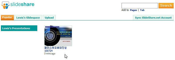 5. 이 [SlideShare] 버튼을 클릭하시면 이제부터는 아래와 같은 페이지로 언제든 곧장 접속이 되실 겁니다.