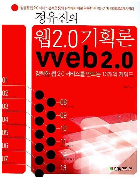 이름하여, [정유진의 웹2.0 기획론] 이라는 책이었는데, 제가 근년에 읽었던 책 중에서 밑줄 쳐 가면서 가장 철저하게 정독하고, 또 다른 사람들에게도 가장 많이 권하고 여러 번 제 돈을 들여 사서 직접 선물하기도 했던 책입니다. 물론 최신 웹 기술 동향과 그 트렌드를 정리하고 있는 책이므로, 전문적인 용어도 꽤 많이 나오고, 일반인들이 쉽게 이해하기에는 어려운 부분도 없지 않습니다.