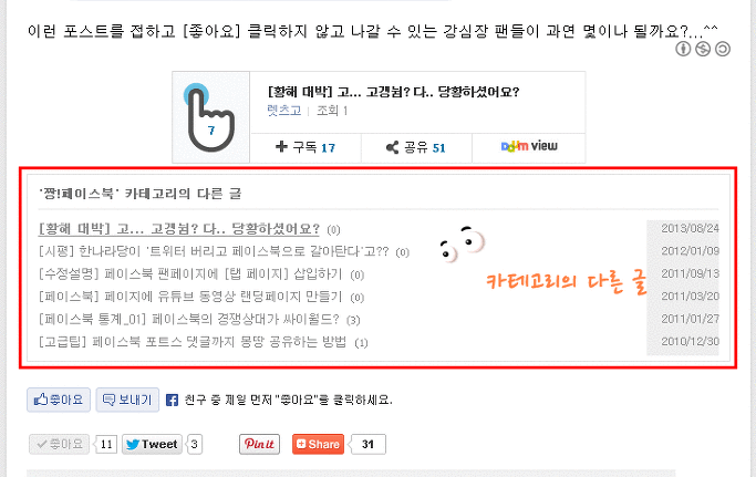 이 때 [카테고리의 다른글 보기] 위젯(플러그 인)을 활성화시켜 주면 간단하게 지원되는데요...