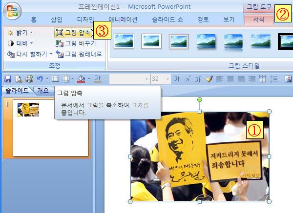 # [파워포인트 2007]에서 [그림압축] 메뉴 찾기 (2009.6.11 추가본)
